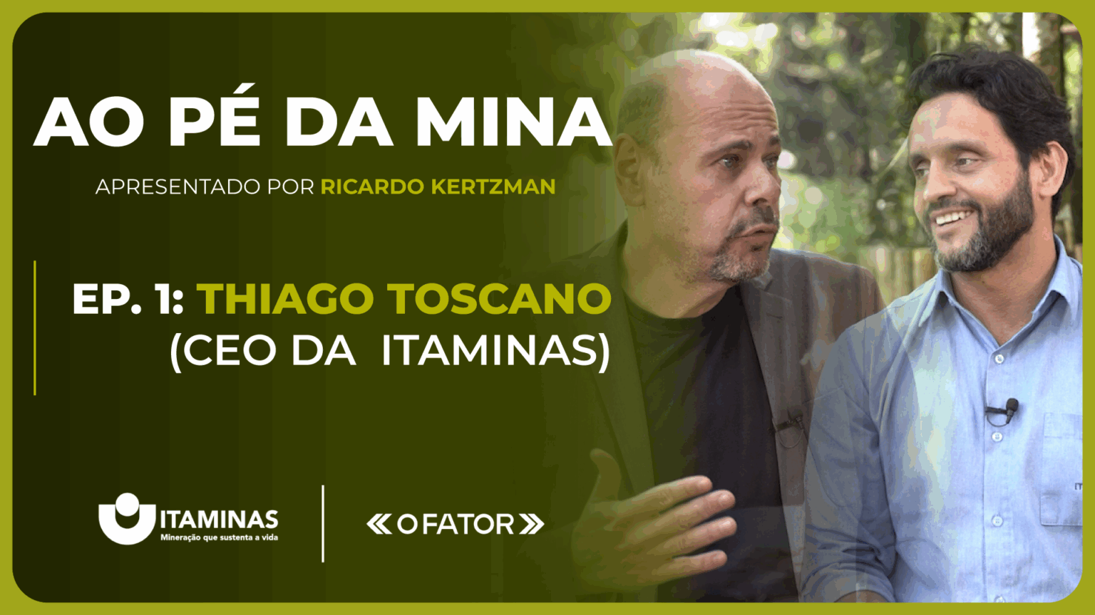 O episódio de lançamento, primeiro de uma série prevista para 24 programas, traz uma conversa descontraída, porém densa em conteúdo, entre Ricardo Kertzman, publisher de O Fator, e Thiago Toscano, CEO da Itaminas. Gravada no horto florestal da Itaminas, uma imensa reserva natural com milhares de espécies nativas e plantas ornamentais, tendo ao fundo da conversa o som da cachoeira e da própria fauna silvestre, a estreia de Ao Pé da Mina tem tudo para agradar em cheio os “stakeholders” do mercado, bem como o público em geral, sempre interessado em uma boa “prosa mineira”, que mistura mineração, sustentabilidade, economia e gente.