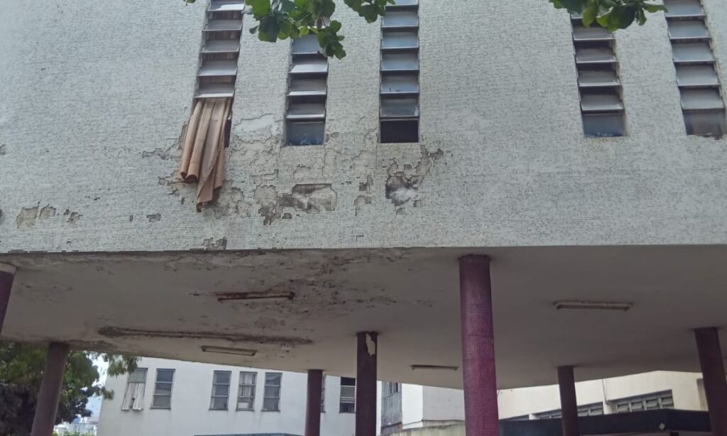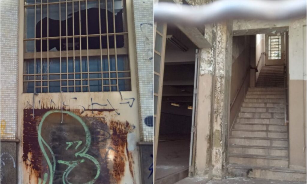 Enquanto isso não ocorre, os sinais da degradação se avolumam no quarteirão fechado da antiga Escola de Engenharia. Nos prédios, há paredes sujas, pichadas e com o reboco descascando. Há também vidros quebrados.