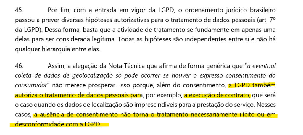 Em novembro de 2022 a então coordenadora-geral de Consultoria Técnica e Sanções Administrativas da Senacon, Carolina Araújo de Andrade, concluiu que “a eventual coleta de dados de geolocalização só pode ocorrer se houver o expresso consentimento do consumidor, o que não restou demonstrado nestes autos”.