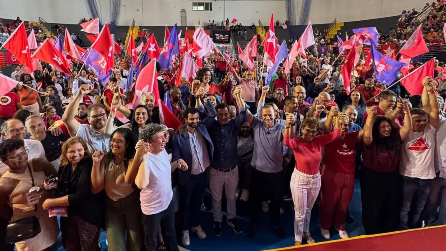 O ato em apoio à candidatura de Edinho Silva a presidente do diretório nacional do PT, nesse domingo (6), em Contagem, na Região Metropolitana de Belo Horizonte (RMBH), foi marcado por ausências. Dos 10 deputados federais do PT mineiro, compareceram apenas três: Dandara Tonantzin, Miguel Ângelo e Reginaldo Lopes. Também houve baixa representatividade da bancada de deputados estaduais, formada por 13 parlamentares. Do grupo, estiveram no Sesc Contagem somente Cristiano Silveira, presidente estadual, e Doutor Jean Freire .