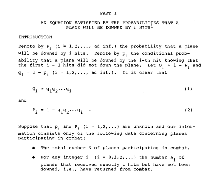 Nesses memorandos desenvolveu métodos para estimar a vulnerabilidade de diferentes partes de aviões militares com base no dano observado nos aviões que retornavam para a base. Os textos, confidenciais por várias décadas, foram publicados em 1980.